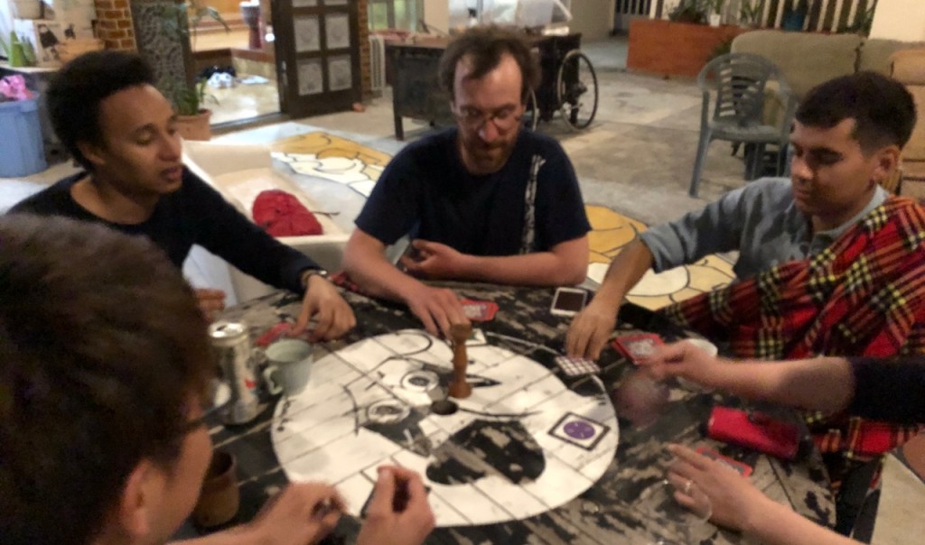 そして日本人の松井さんや進藤さんも交えてのテラスで飲み会&カード大会!