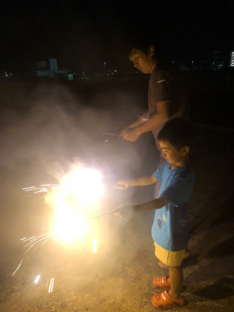 もちろん打ち上げ花火などの危険な花火はダメですし、風向きを考えたりバケツに水を用意はしますが、小さい花火や手持ち花火なんかでは十分に楽しんでもらえます♪