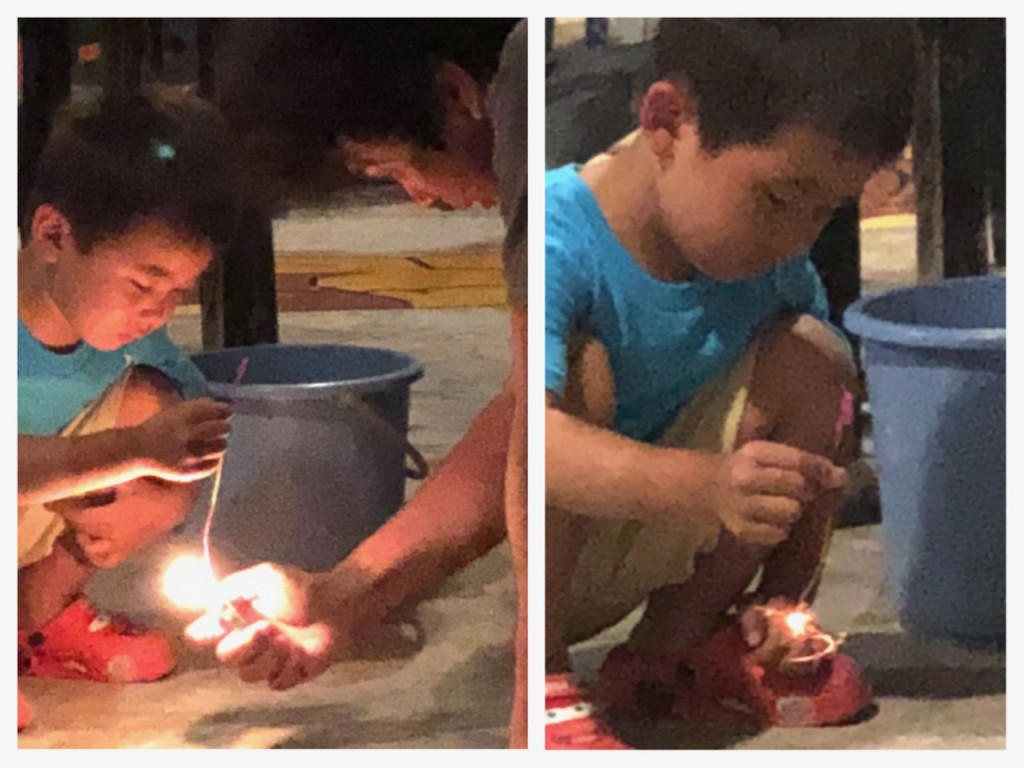 そしてパパと二人で並んで手持ち花火!